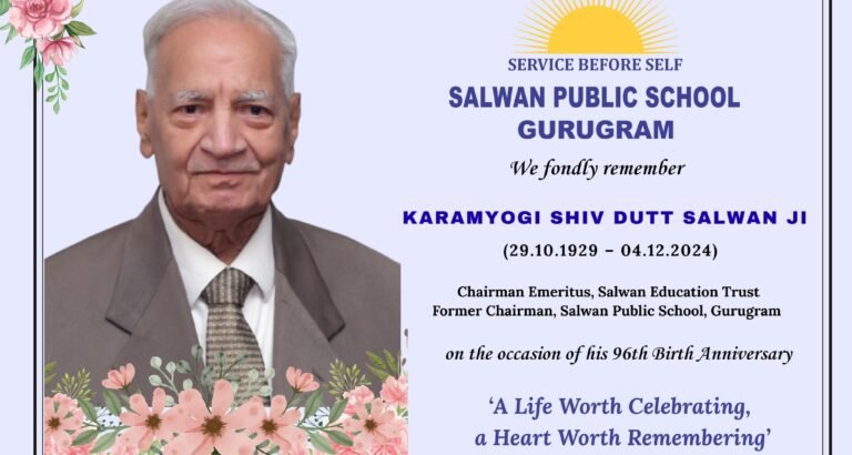 Salwan Public School, Gurugram, observed the birth anniversary of Late Shri Shiv Dutt Salwan Ji, Chairman Emeritus of the Salwan ...